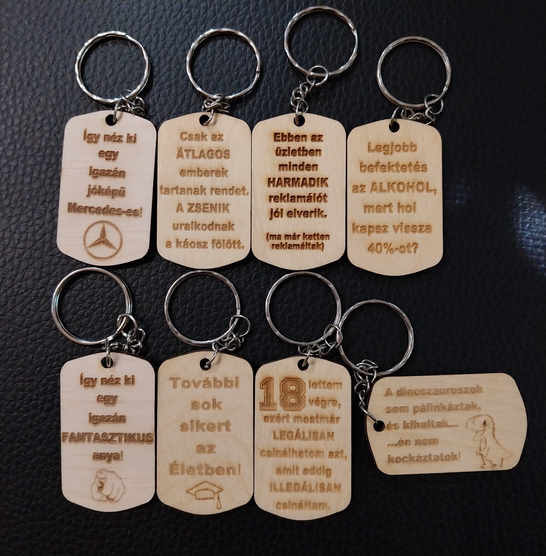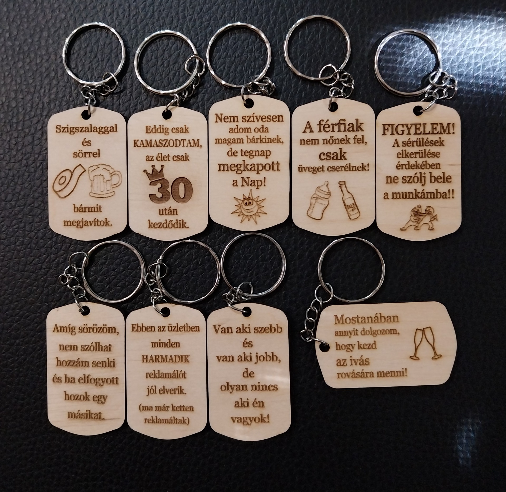 Egyedi neves/mintás/szöveges kulcstartók bármilyen alkalomra, natúr vagy fehér fából.
