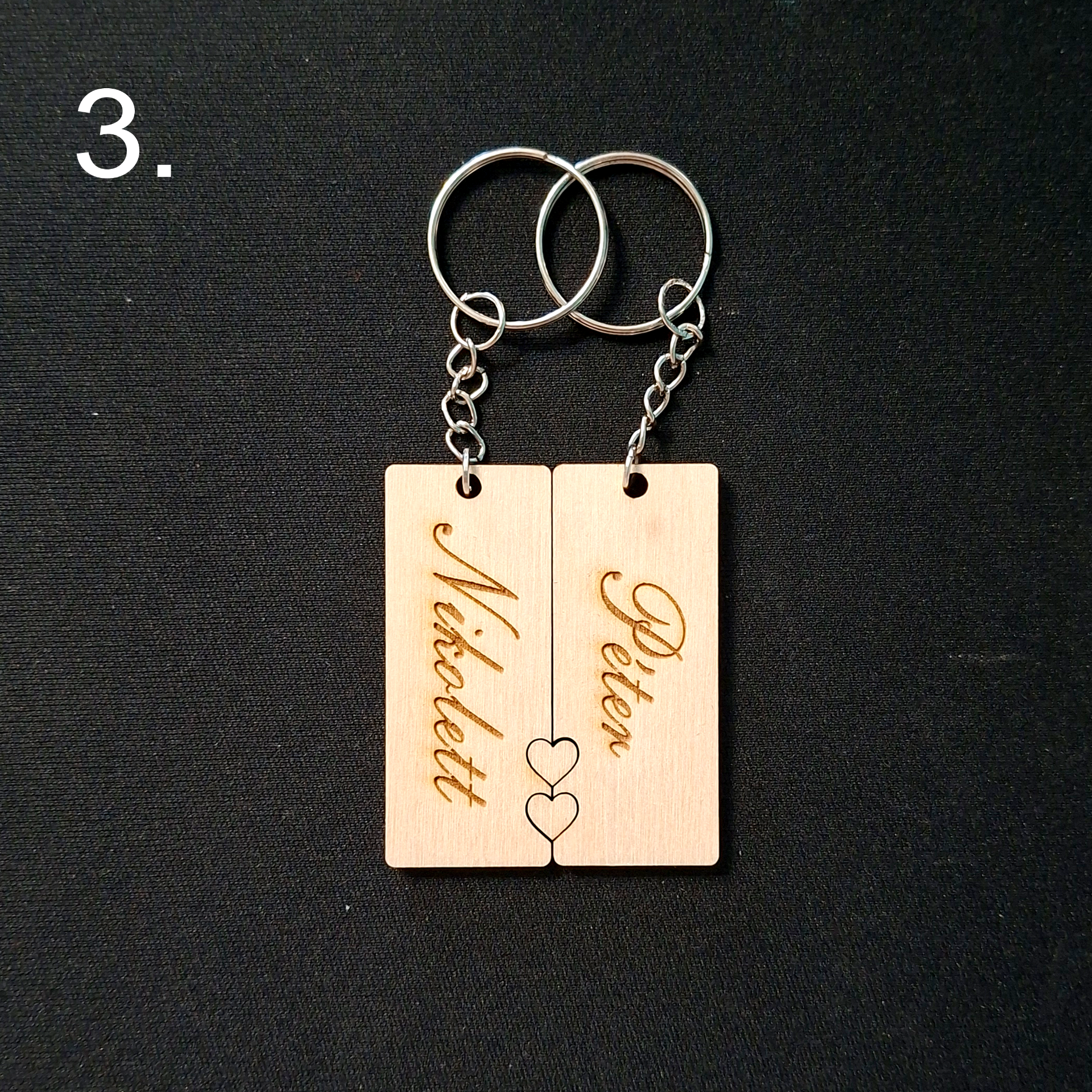 Egyedi évfordulós kulcstartók.