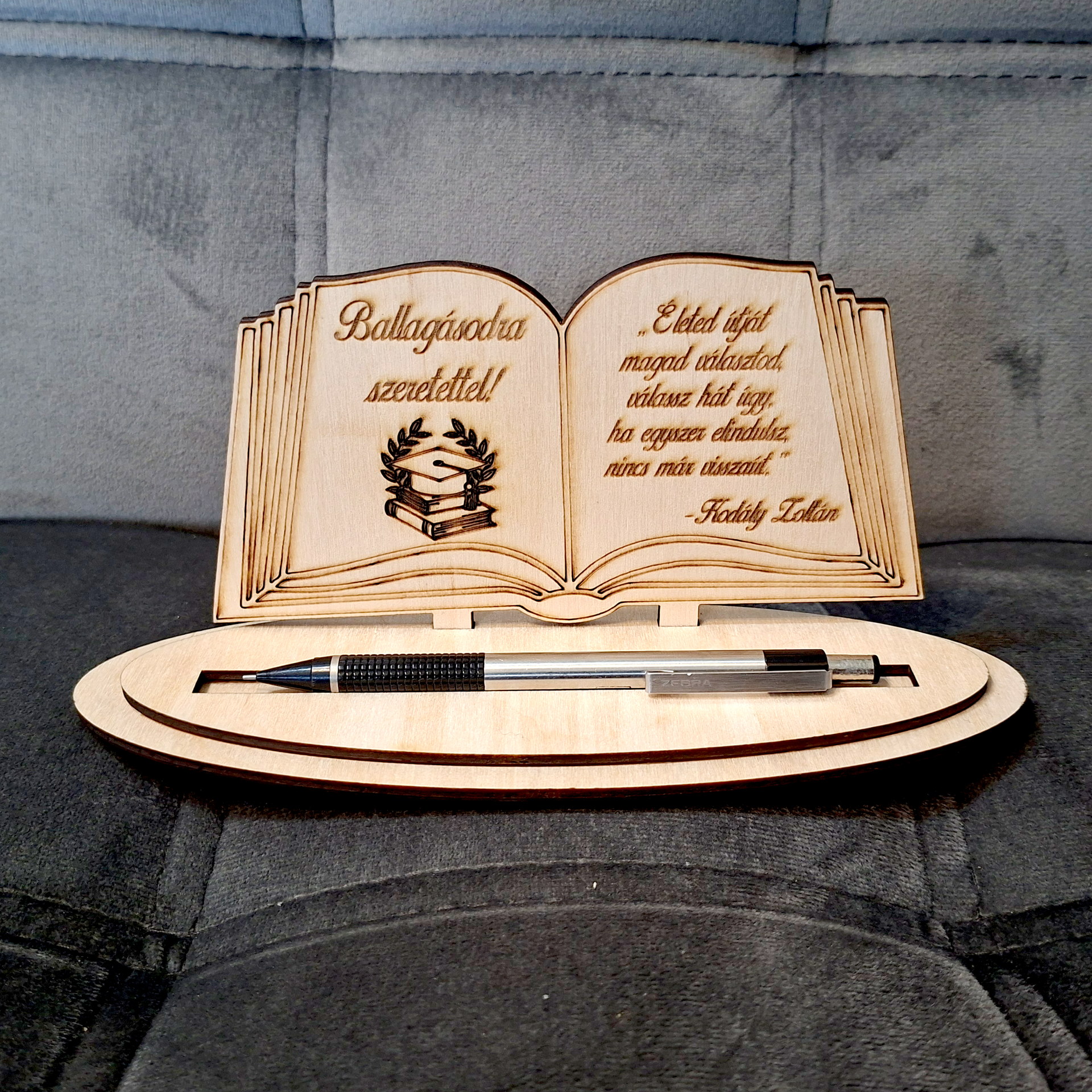 Ez az elegáns, könyv formájú fa tolltartó különleges és maradandó ajándék ballagásra. Ideális választás diákoknak, pedagógusoknak vagy bárkinek, aki egy igazán különleges ajándékot keres.