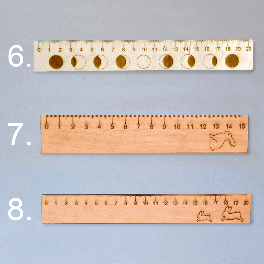 Egyedi gravírozású, 20 cm-ig számozott gyermekeknek szánt vonalzó.