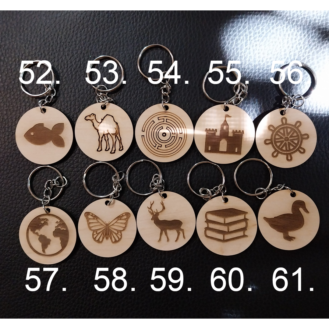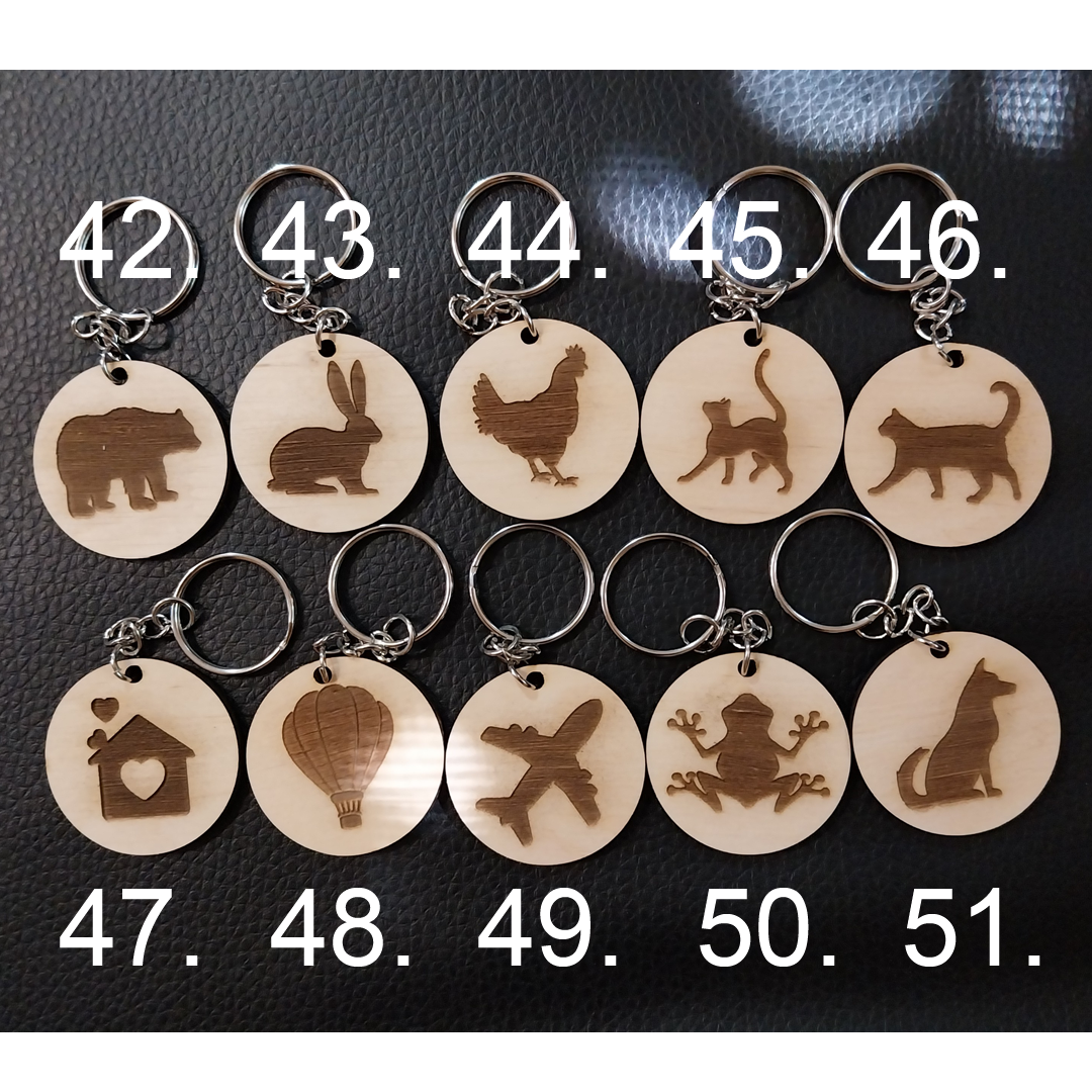 Egyedi gravírozású, gyermekeknek szánt kulcstartók. Kérhető egyedi mintával is.
