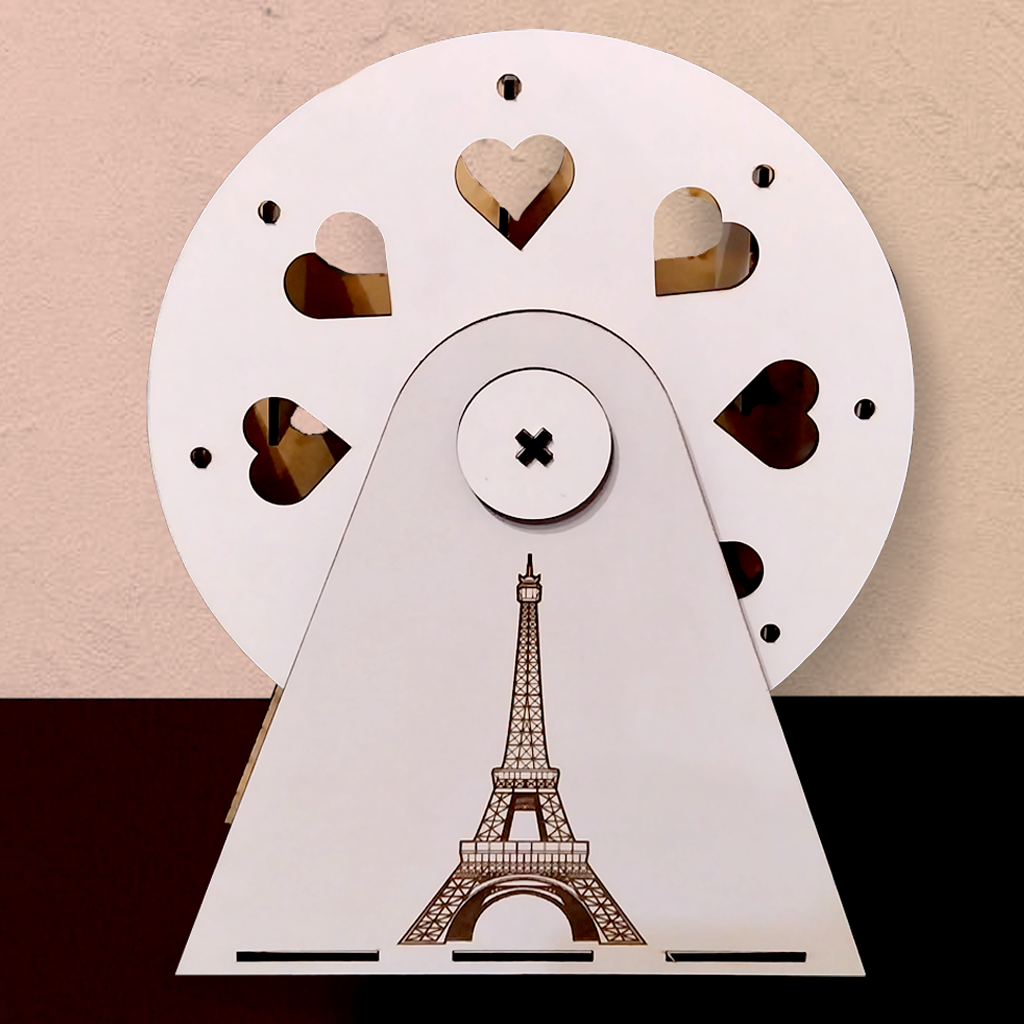 Forgatható fa fotótartó több kép elhelyezésére, egyedi felirattal/ mintával. Ideális ajándék Valentin-napra, évfordulóra vagy esküvőre.