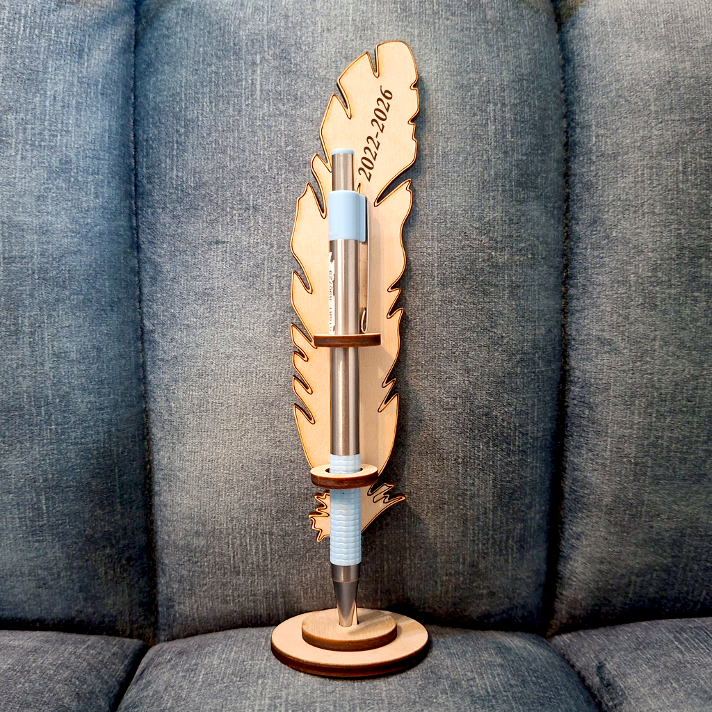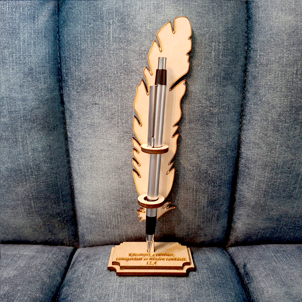 Ez az elegáns, madártoll formájú fa tolltartó különleges és stílusos ajándék tanároknak. A gravírozás személyre szabható névvel, dátummal vagy egy rövid üzenettel, így maradandó emlékké válik.