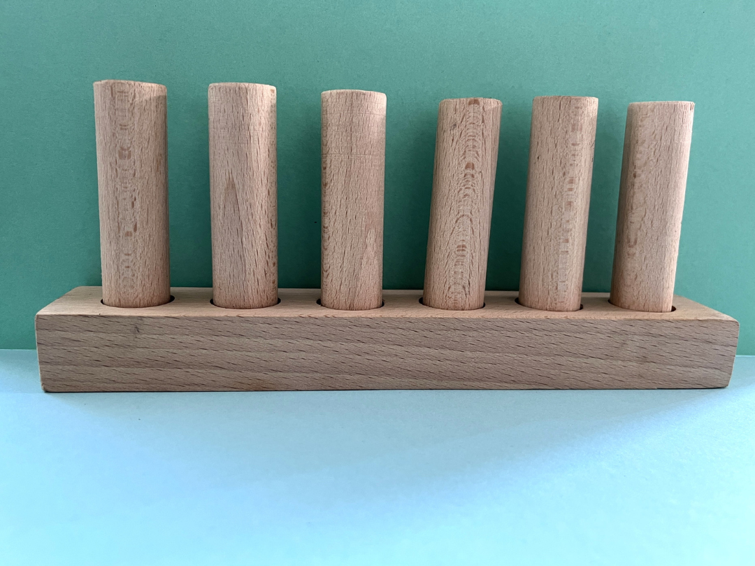 Tartalma: 6 db hasáb vagy henger, fa szortírozó tábla.
