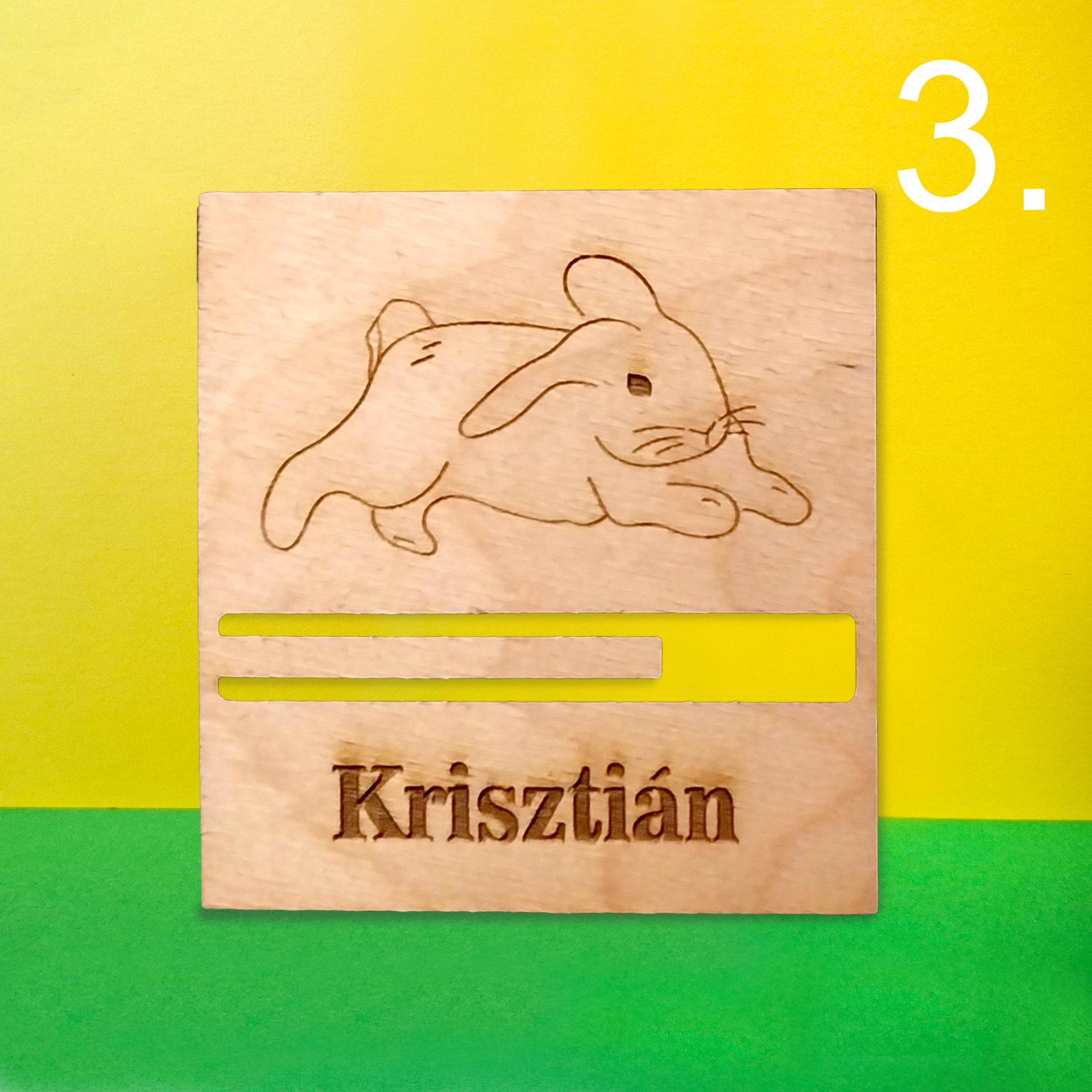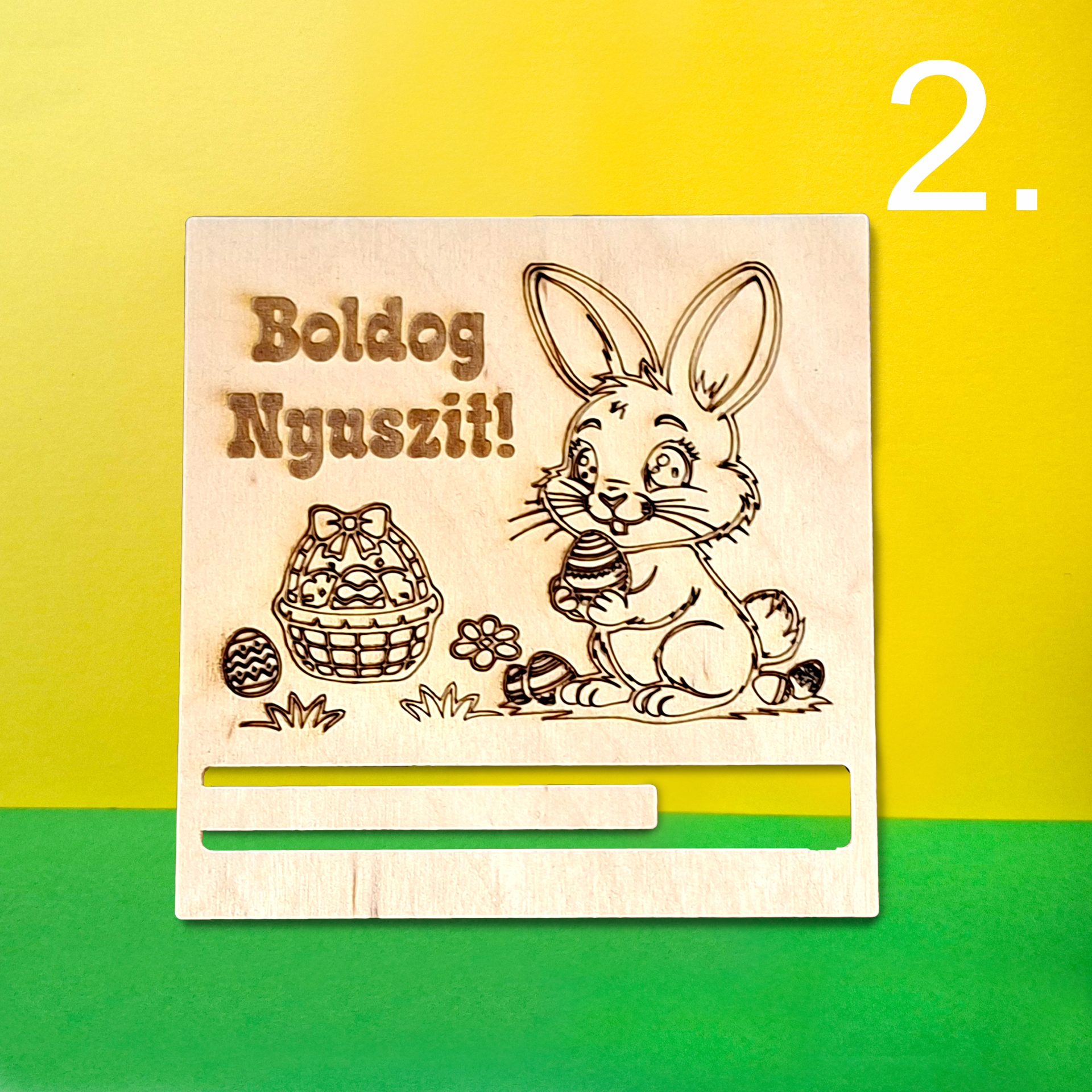 Aranyos mintákkal készült fa húsvéti pénzátadó, amely stílusos és emlékezetes módja a pénzajándékozásnak húsvétra.