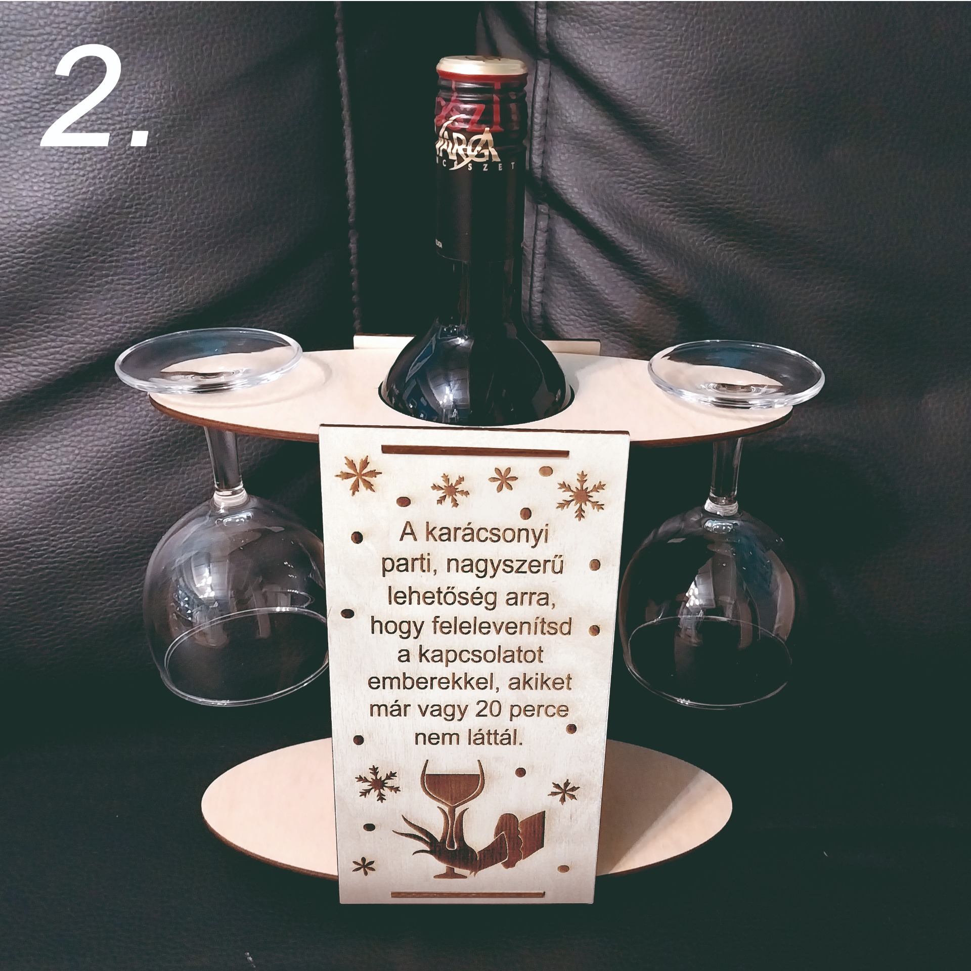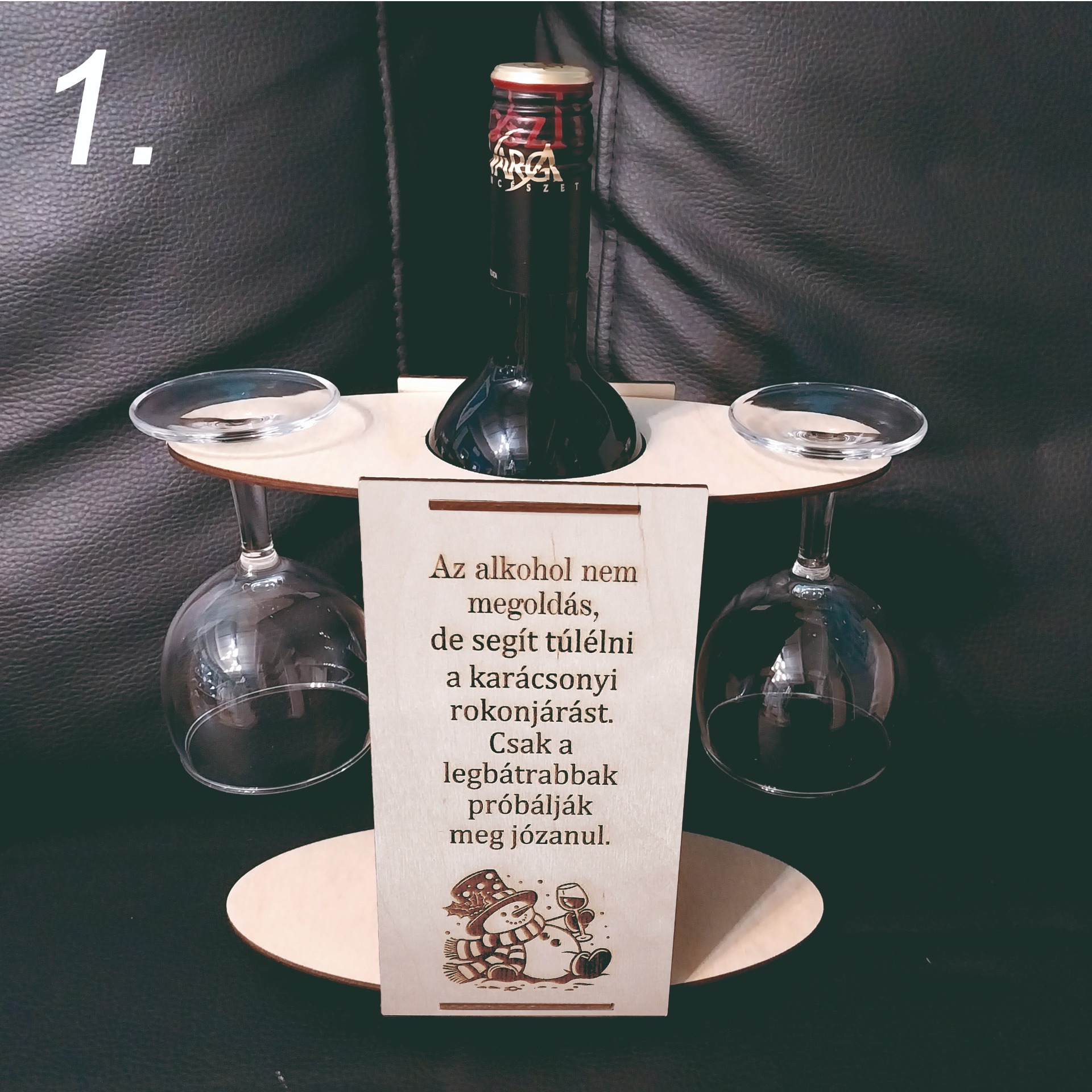 Vidám, gravírozott karácsonyi bor- és pohártartó. A gravírozott karácsonyi idézet garantáltan mosolyt csal minden vendég vagy ajándékozott arcára. Tökéletes ünnepi ajándék barátoknak, kollégáknak vagy családtagoknak.