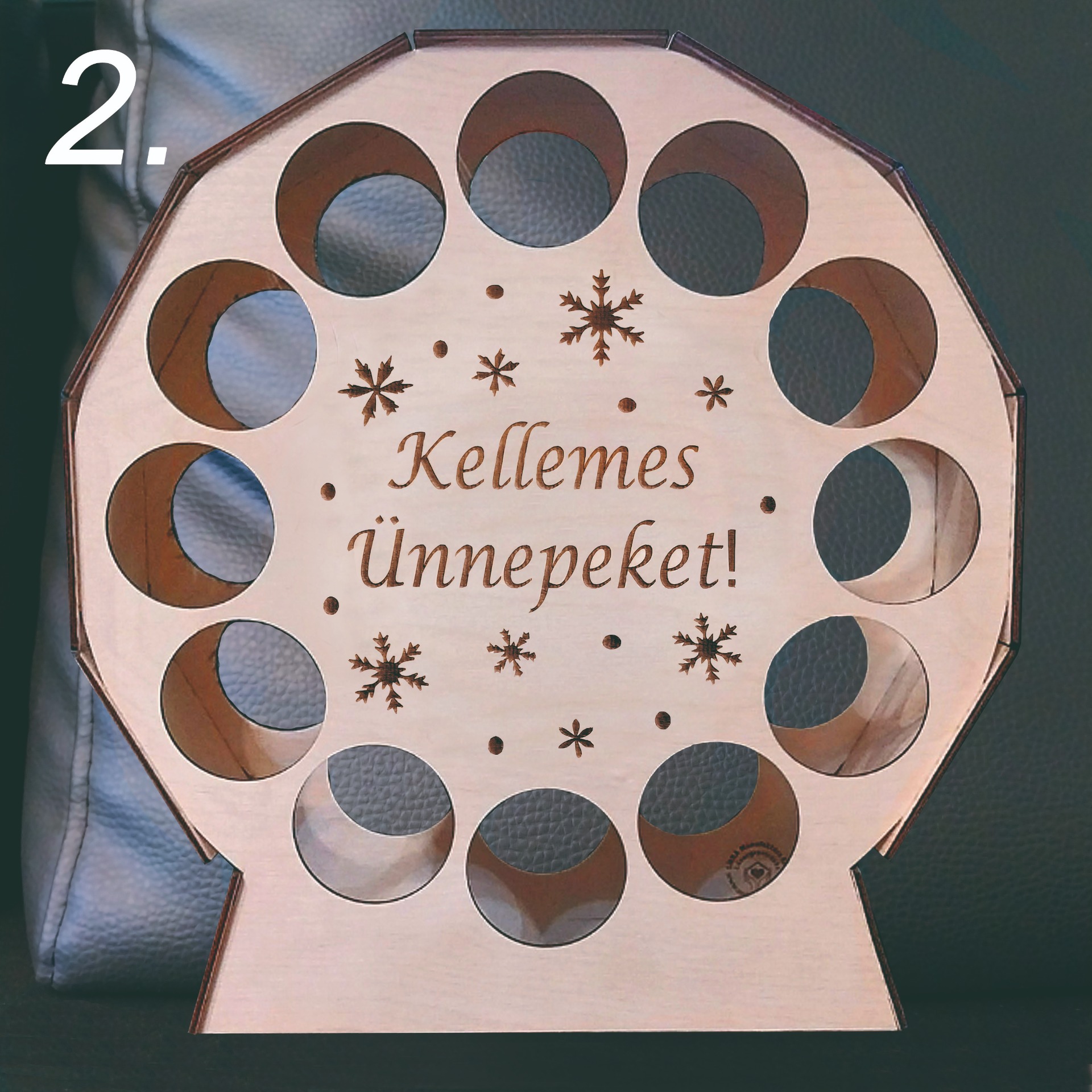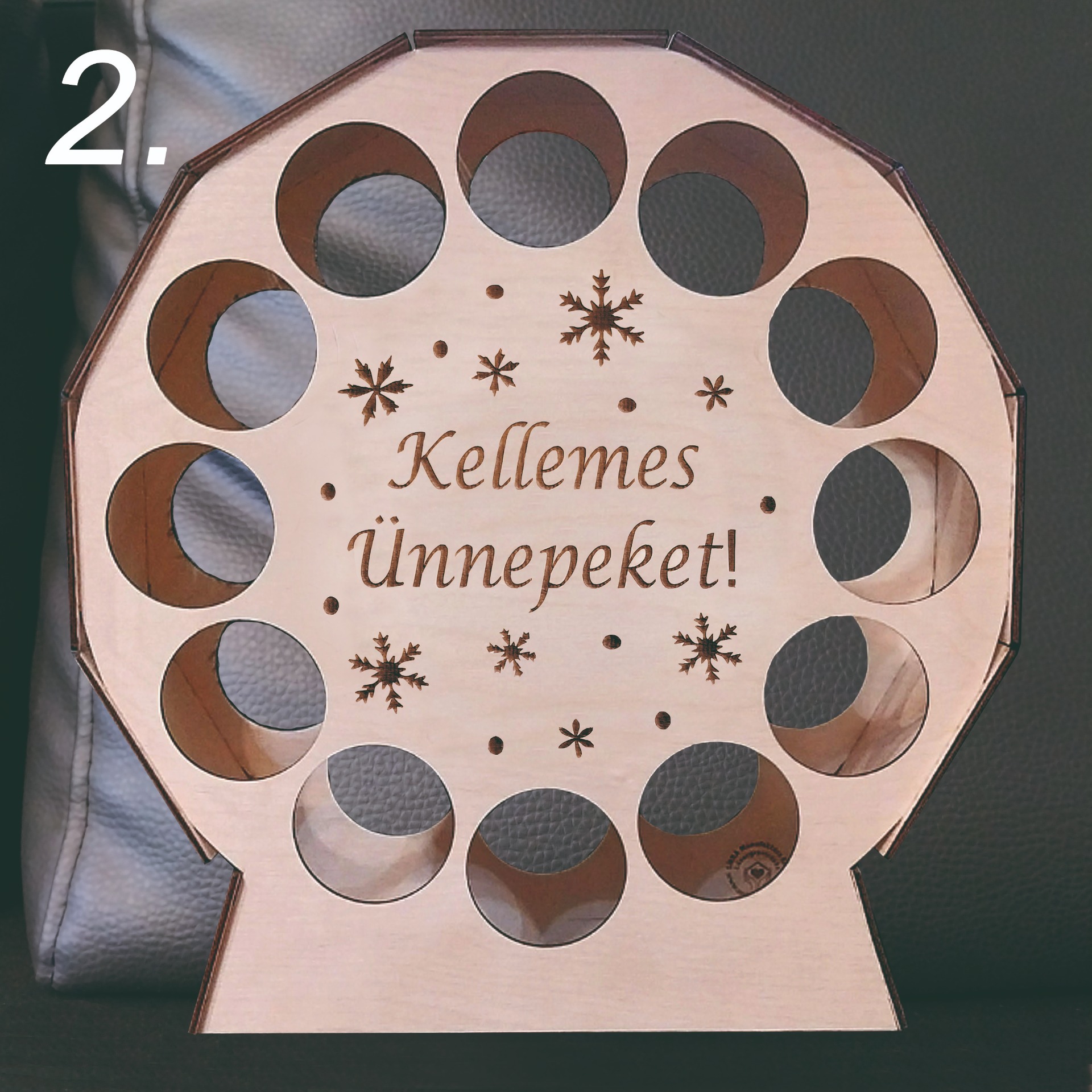 Kedves, ünnepi hangulatú fa italtartó. Tökéletes karácsonyi ajándéknak, dekorációnak vagy ünnepi asztalra.