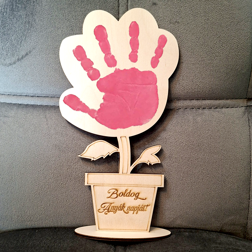 Ez a cserépbe "ültetett" fa virág különlegessége, hogy a gyermeked saját tenyérlenyomatával válik teljessé, így nemcsak egy ajándék, hanem egy örök emlék is marad a legkisebbek apró kezeiről.