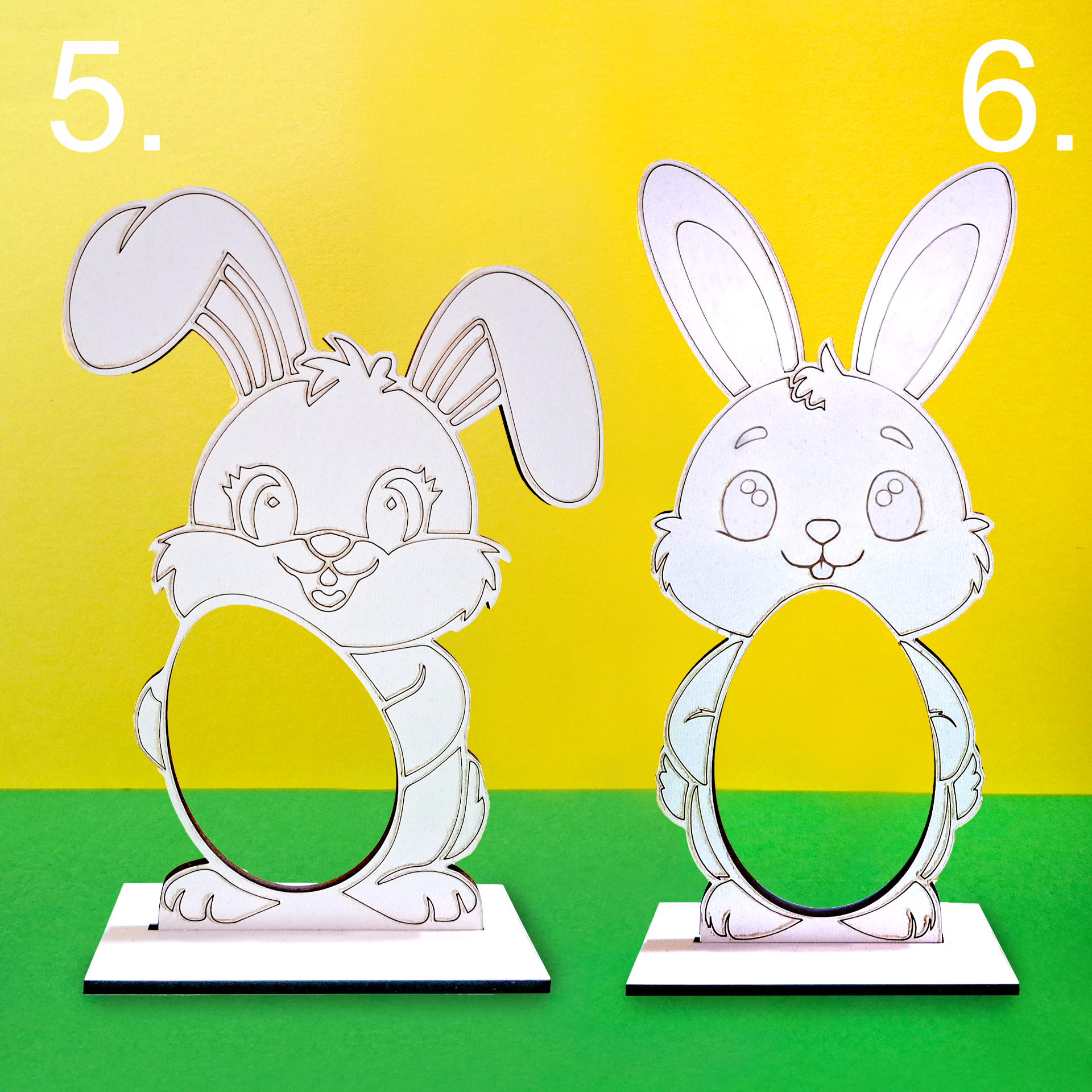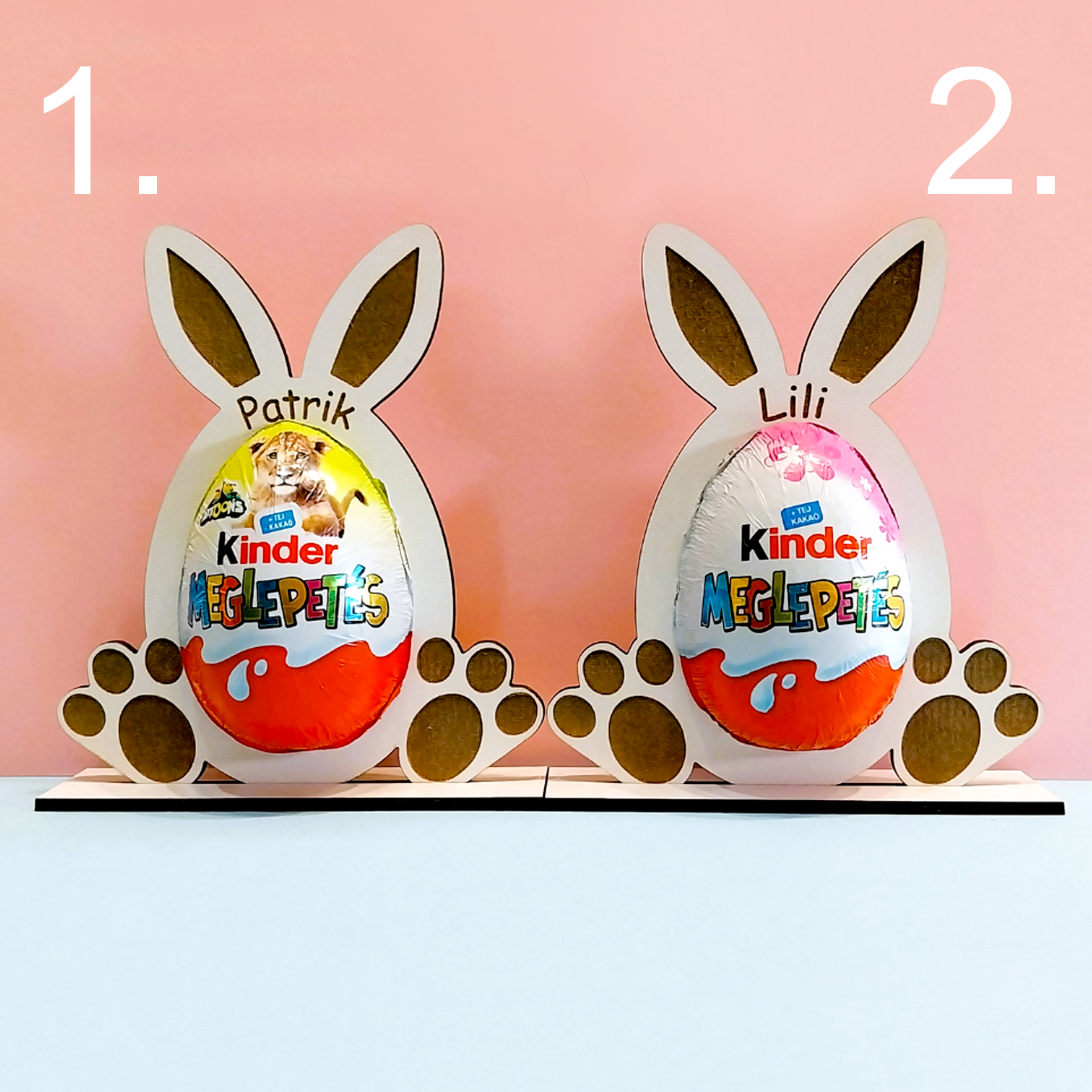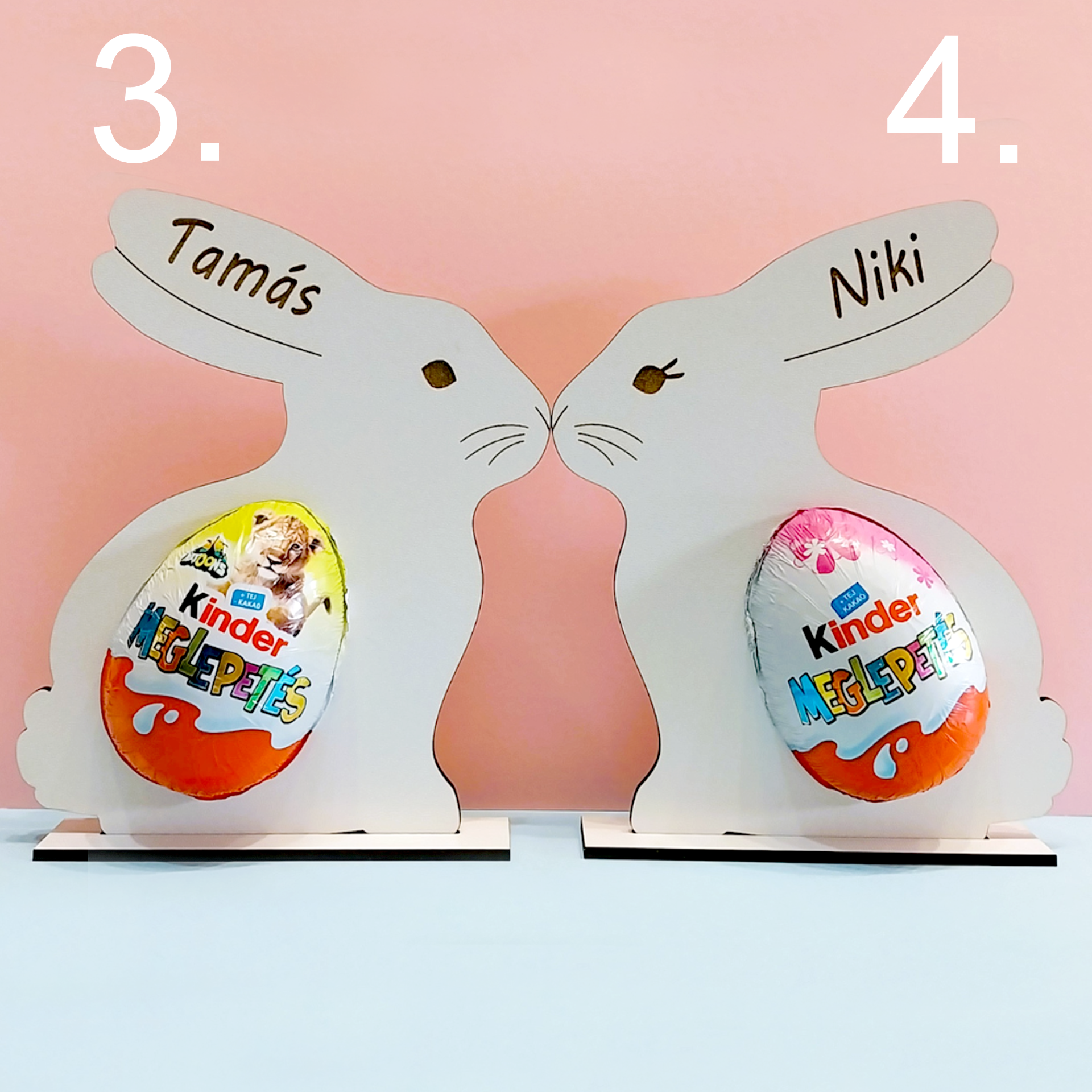 Kedves, nyuszi formájú húsvéti tojás tartó, amelyet névvel is elkészítünk. Tökéletes apró ajándék gyerekeknek húsvétra, locsolkodásra vagy tojásvadászathoz.